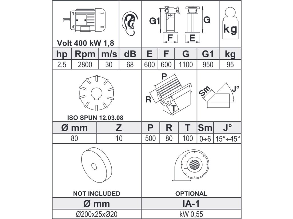 Brusný kotouč není součástí dodávky. Možnost dokoupení suchého odsavače IA-1.
