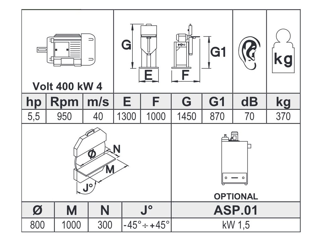 Je vybavena stabilním ocelovým podstavcem a pracovním stolem s úhlovým nastavením ± 45. Průběžná brusná plocha je přístupná po odstranění krytu.